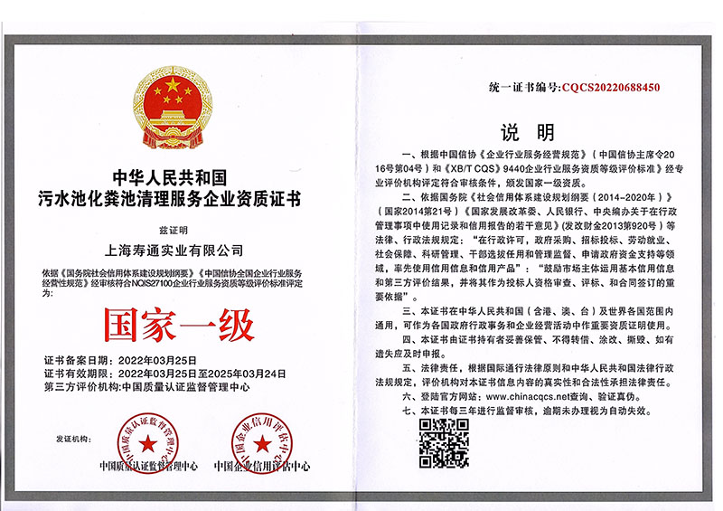 污水池清理证书